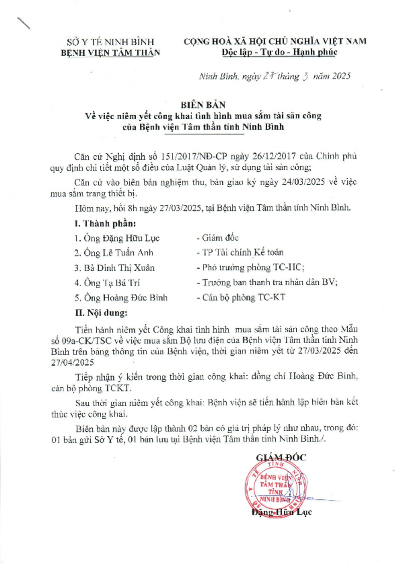 Công khai mua sắm, quản lý và sử dụng tài sản năm 2025
