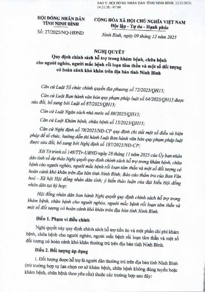 Quy định chính sách hỗ trợ tiền ăn nằm điều trị nội trú tại bệnh viện tâm thần từ 01/01/2026
