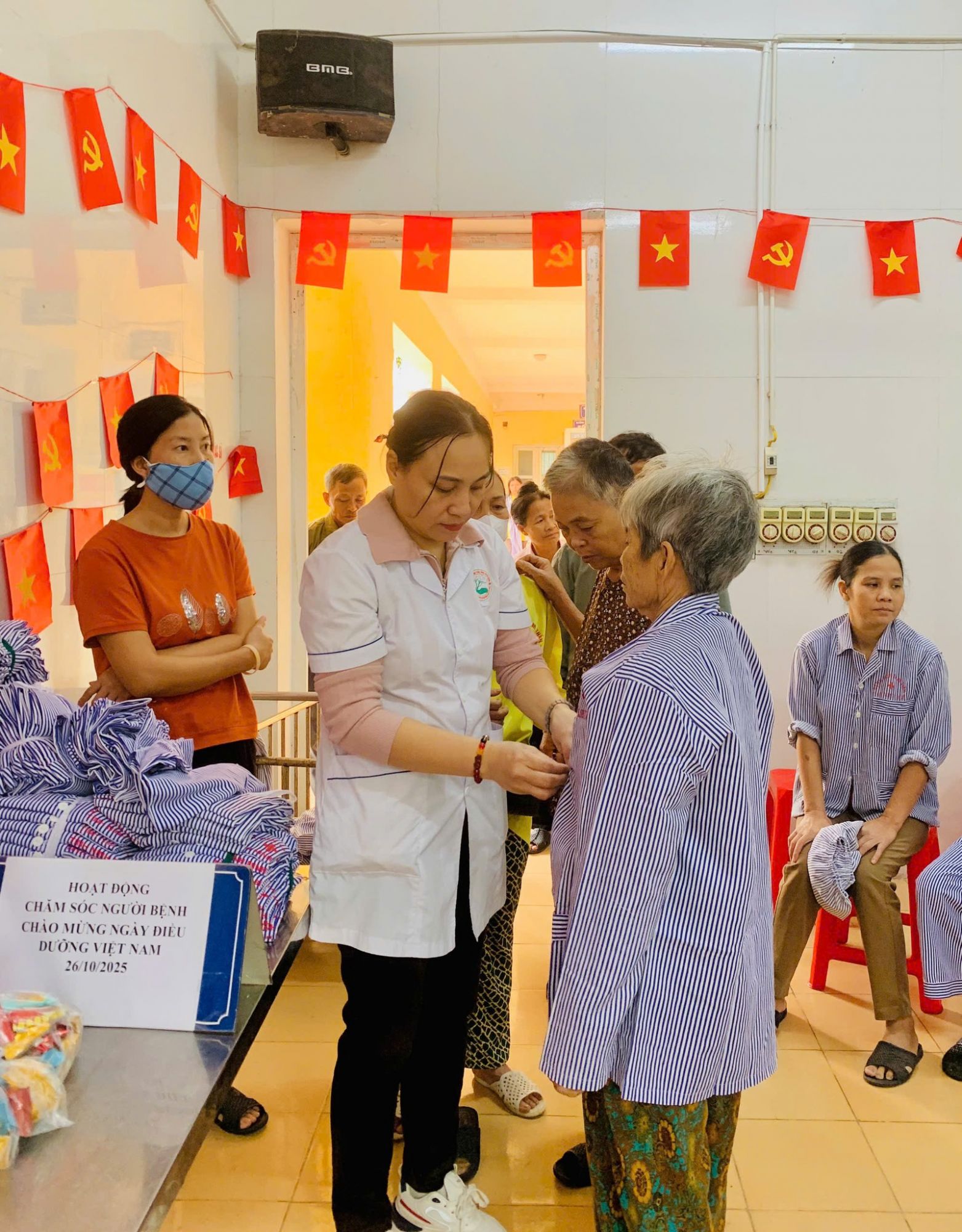 * Chăm sóc đặc biệt trong thời tiết se lạnh: Đặc biệt, trong những ngày cuối thu thời tiết bắt đầu se lạnh, Ban Lãnh đạo và tập thể Điều dưỡng Bệnh viện đã triển khai tập trung tại Khoa Kiểm soát nhiễm khuẩn đun nước nóng, sau đó pha nước ấm và khiêng về tận các khoa để phục vụ người bệnh tắm gội. Hành động này đảm bảo sức khỏe, tránh nhiễm lạnh thể hiện sự ân cần, chu đáo và tình người sâu sắc của đội ngũ điều dưỡng.