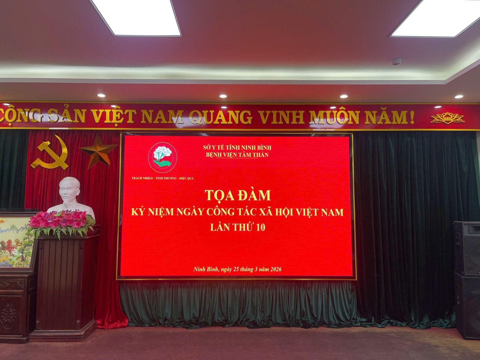 Nhân kỷ niệm Ngày Công tác xã hội Việt Nam 25/3, Bệnh viện Tâm thần tỉnh Ninh Bình tổ chức tọa đàm kỷ niệm ngày công tác xã hội, nhằm tôn vinh giá trị nhân văn, ghi nhận đóng góp của người làm công tác xã hội, thúc đẩy công bằng, hỗ trợ người yếu thế và lan tỏa truyền thống tương thân tương ái, nhân dịp này Bệnh viện đã phối hợp cùng các nhà hảo tâm tổ chức chương trình trao 10 phần quà đặc biệt dành cho những người bệnh có hoàn cảnh khó khăn đang điều trị nội trú tại bệnh viện.
