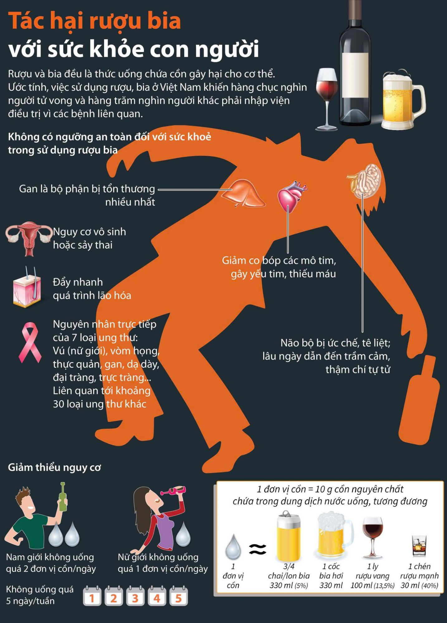 Rượu bia là chất ức chế hệ thần kinh trung ương. Khi lạm dụng, người uống dễ rơi vào các trạng thái: