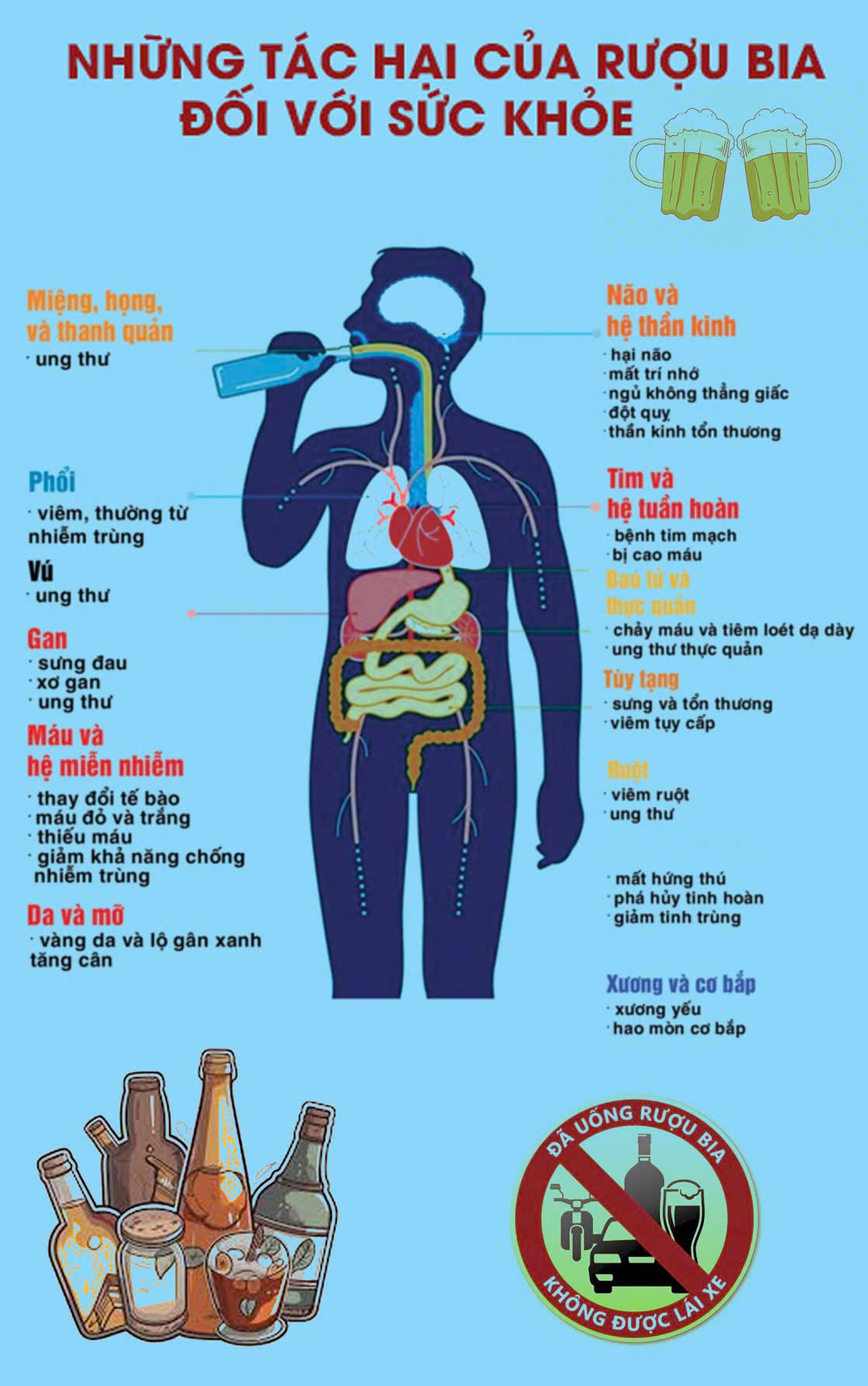 • Tai nạn giao thông: Rượu bia làm giảm khả năng phản xạ và kiểm soát hành vi. Một chút quá chén có thể dẫn đến những mất mát không thể cứu vãn.